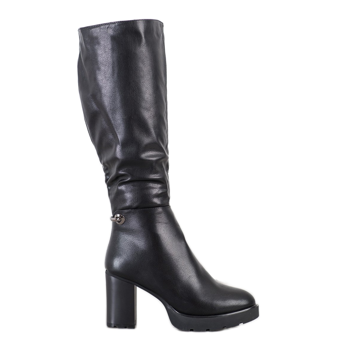 Aqui está a proposta perfeita para mulheres que valorizam elegância e conforto - botas pretas de salto alto da SHELOVET. Estes sapatos clássicos, confeccionados em couro ecológico de alta qualidade, encantam pela simplicidade e pela cor preta universal, que se adapta perfeitamente a vários estilos.