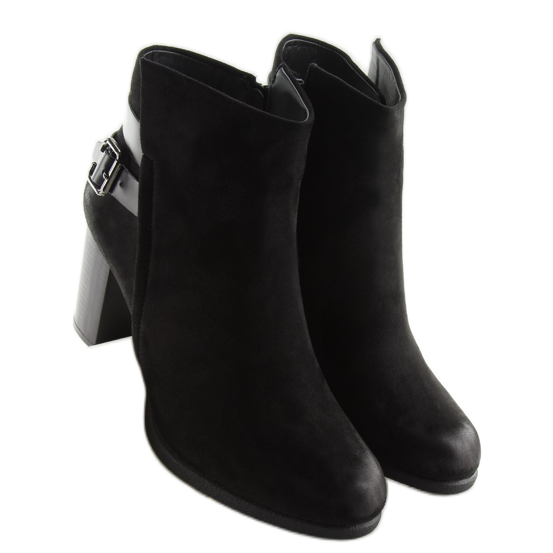 Descubra elegância e conforto num só - apresentamos os clássicos botins femininos com salto estável, que certamente se tornarão um elemento insubstituível do seu guarda-roupa. Confeccionados em camurça ecológica de alta qualidade, esses botins pretos encantam não só pela aparência, mas também pelo conforto de uso.