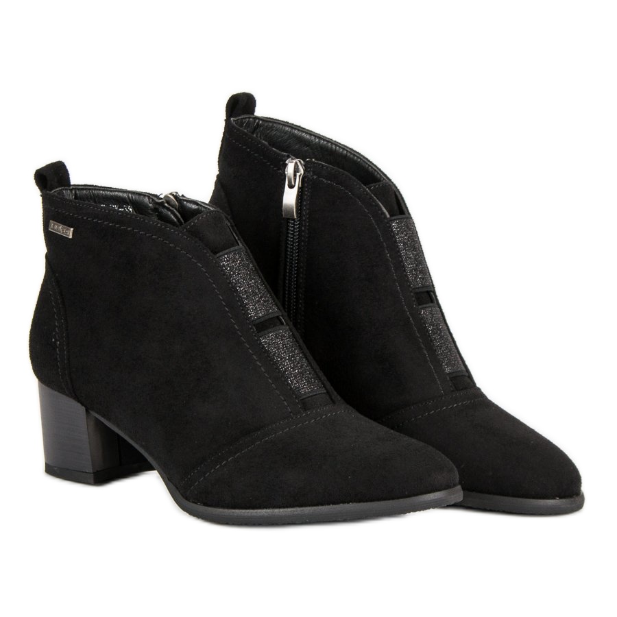 Os elegantes botins pretos Filippo são a escolha perfeita para mulheres que valorizam uma combinação de conforto e elegância. Feitos de camurça ecológica de alta qualidade, eles parecem não apenas modernos, mas também elegantes. Seu elemento característico é o salto bloco de 5 cm de altura, que garante estabilidade e conforto no uso diário.