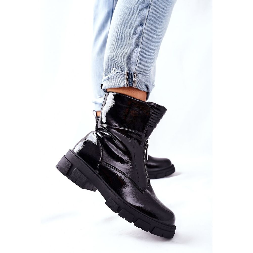 Descubra conforto e estilo extraordinários com botins femininos Nobleford pretos da S.Barski. Estas elegantes botas de caminhada, confeccionadas em couro ecológico envernizado, são a escolha perfeita para qualquer estação do ano. Graças ao interior isolado e à palmilha forrada com manta para calçado, os seus pés sentir-se-ão sempre confortáveis e acolhedores, mesmo nos dias mais frios.