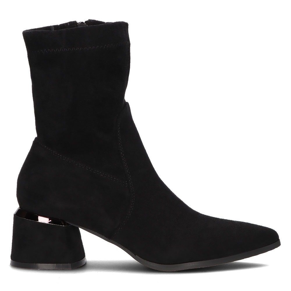 Estes são botins pretos Filippo DBT1542/21 Bk, perfeitos para mulheres que valorizam estilo e conforto. Confeccionados em couro camurça ecológico de alta qualidade, esses botins apresentam bico elegante e pontudo e prático fechamento com zíper, o que os torna fáceis de calçar.