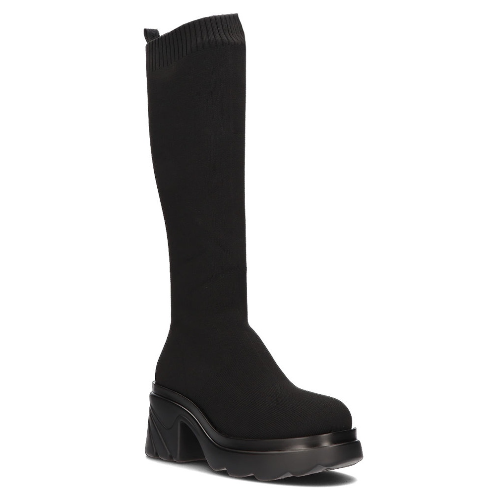 O interior do calçado é forrado com forro em tecido, o que garante conforto, enquanto a palmilha em tecido se adapta ao formato do pé. A circunferência superior de 41 cm faz com que as botas se ajustem perfeitamente à panturrilha, valorizando a figura. A altura superior é de 38 cm, o que os torna uma solução ideal para os dias mais frios.