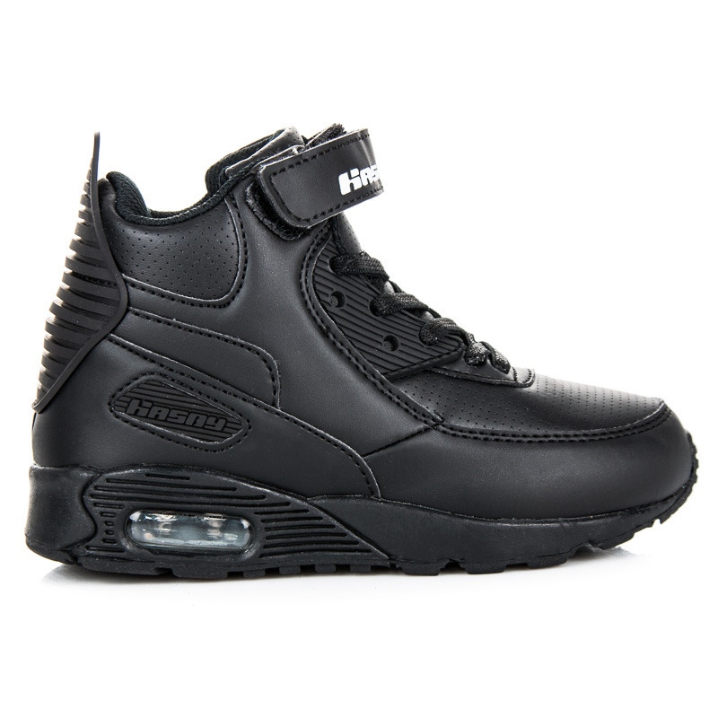Calçado infantil clássico e universal da Hasby, confeccionado em couro ecológico de alta qualidade. O modelo acima do tornozelo oferece suporte adicional para a articulação do tornozelo, e o design simples e preto torna o calçado adequado tanto para estilos do dia a dia quanto para estilos um pouco mais formais - para meninas e meninos.