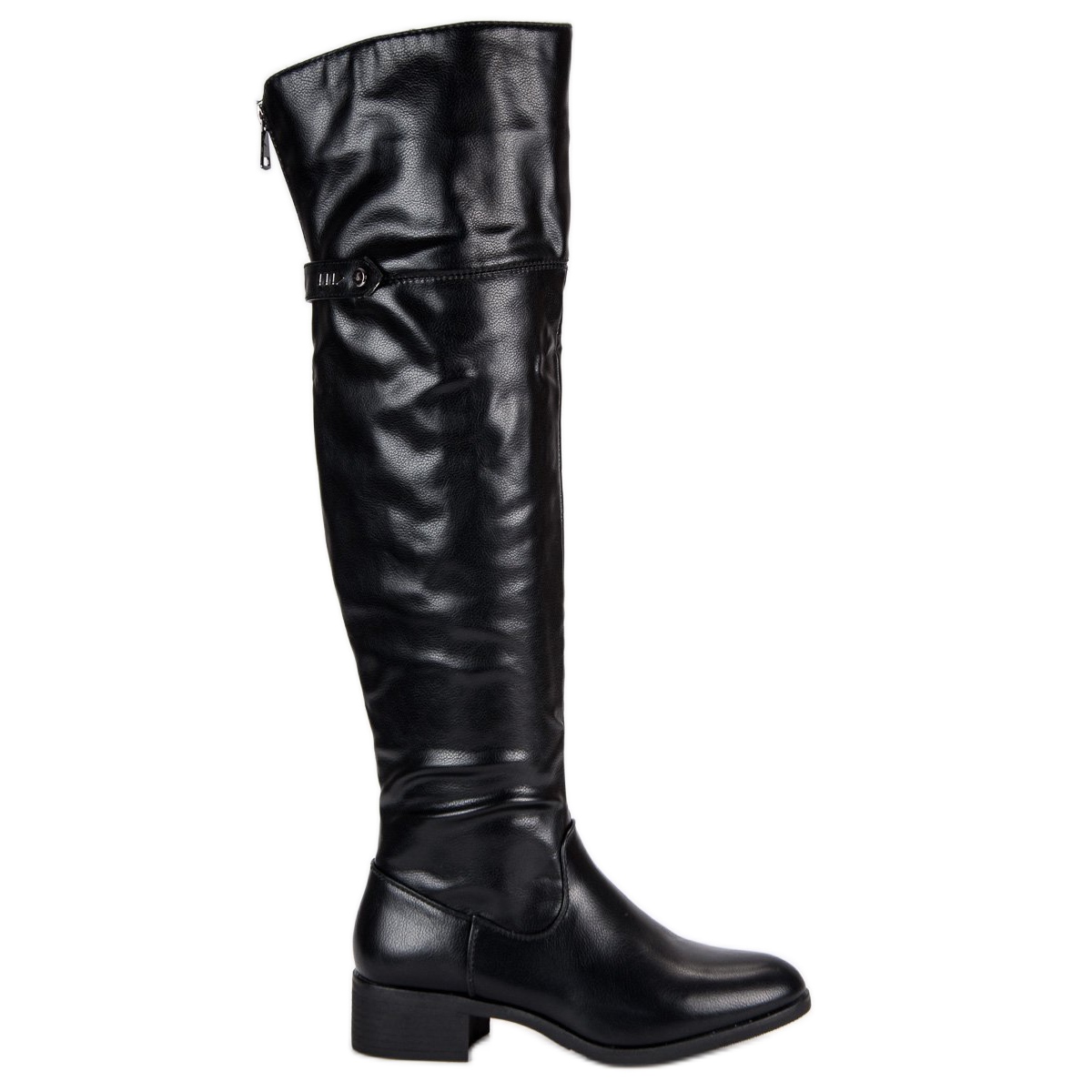 Os mosqueteiros pretos com zíper são sinônimo de elegância e conforto, que combinam perfeitamente estilo com praticidade. Confeccionadas em couro ecológico resistente, essas botas longas com cano acima do joelho enfatizam perfeitamente a figura feminina, ao mesmo tempo que proporcionam ótima proteção contra o vento frio. O modelo se caracteriza por um corte simples e clássico que faz com que cada mulher se sinta especial nele.