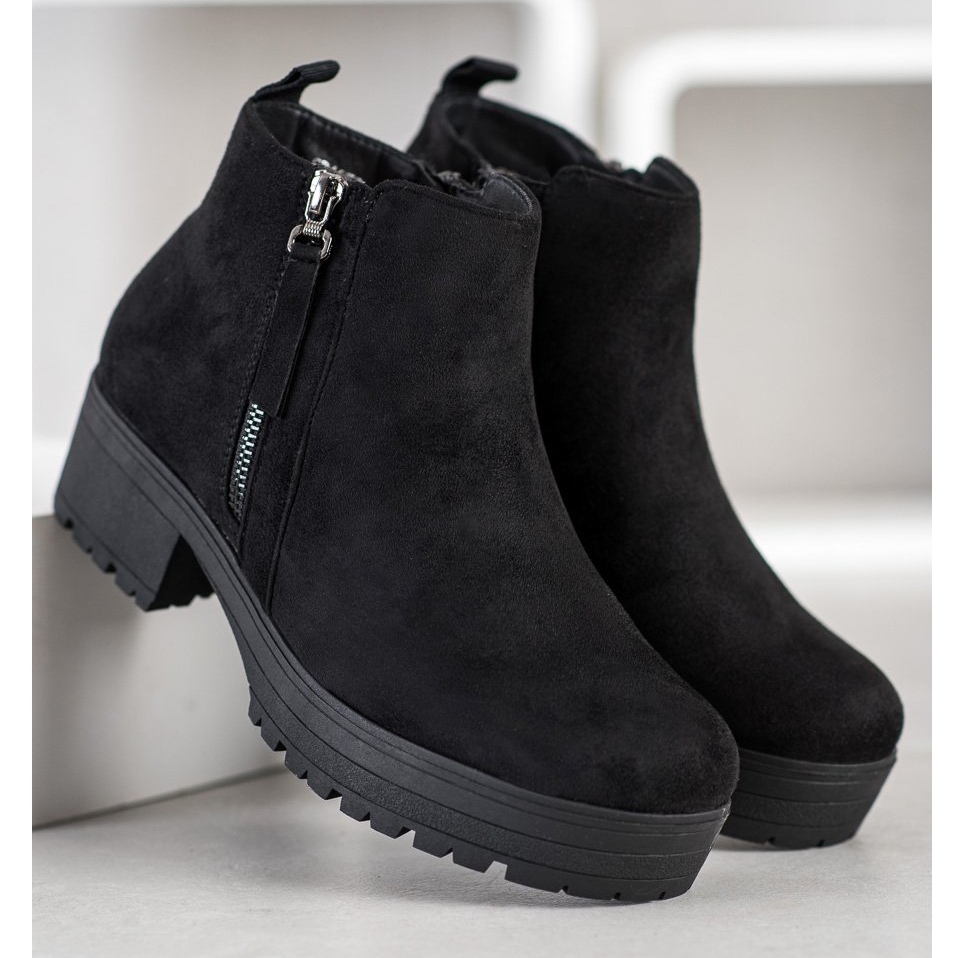 O interior isolado garante conforto nos dias mais frios e o zíper facilita a colocação e a retirada do calçado. Os botins têm uma altura de cano de 9 a 10 cm, o que realça favoravelmente as pernas e os torna fenomenais quando combinados com roupas diversas. O nariz redondo confere-lhes subtileza e o calcanhar reforçado garante estabilidade.