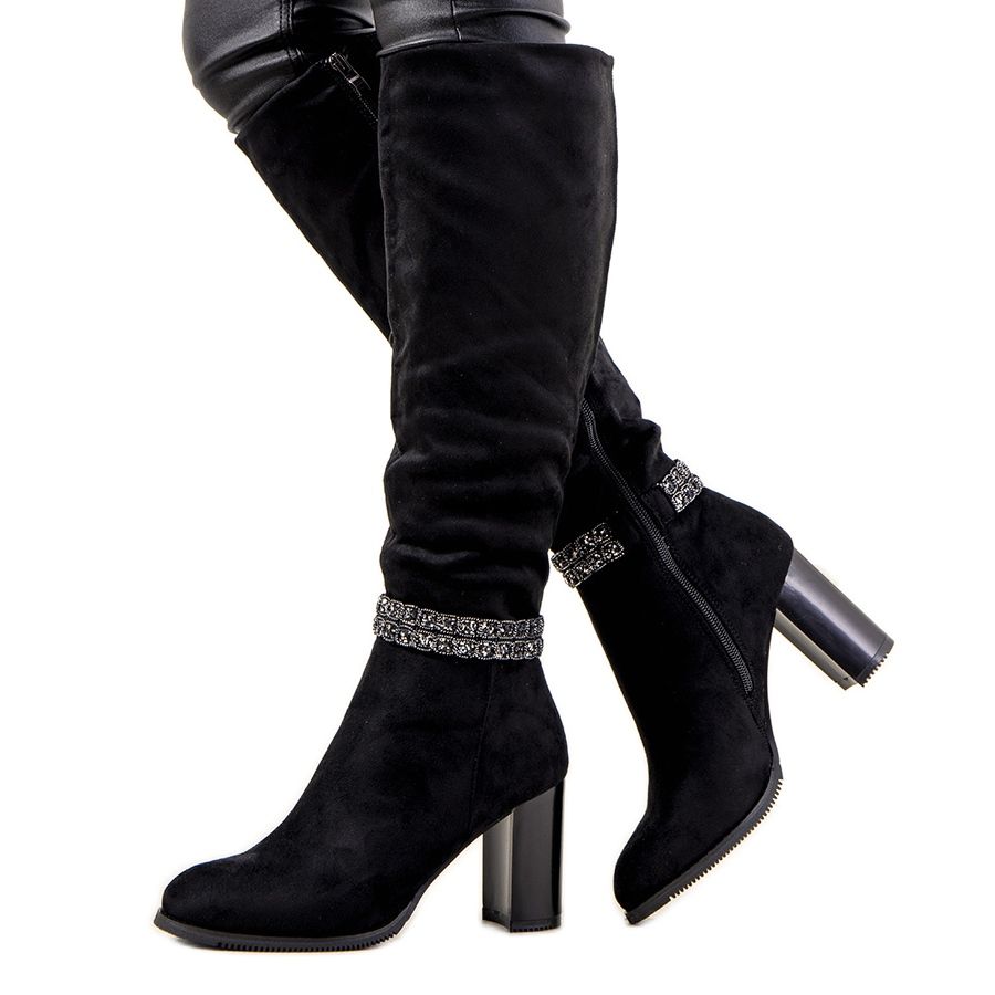 O poste de 8,5 cm de altura e a parte superior ajustada de 43 cm de altura realçam perfeitamente as pernas, tornando-as esguias. Além disso, uma tira decorativa brilhante acrescenta elegância e charme feminino a estas botas. O modelo Z228 é confortável de usar graças ao interior isolado em pele macia, o que o torna a escolha ideal para os dias mais frios.