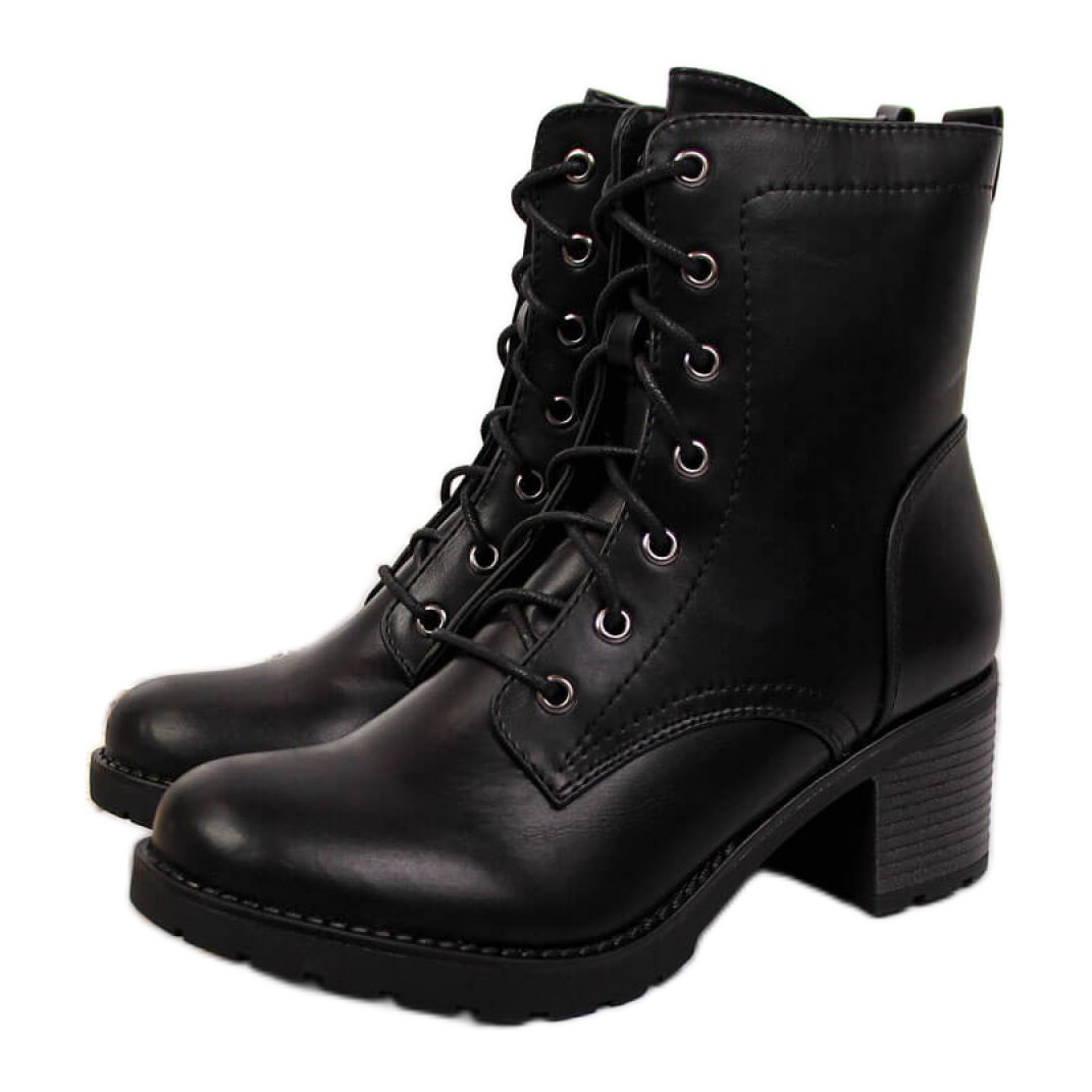 Botas fechadas com zíper e amarradas, o que facilita a calçação e o ajuste ao pé. Graças à altura do tornozelo, protegem perfeitamente do frio, e a sua clássica cor preta faz com que combinem com vários estilos - tanto jeans como vestidos.