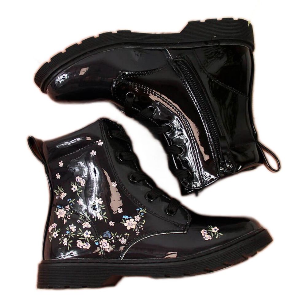 Detalhes: Botas pretas para meninas isoladas Jr EVE326 branco preto