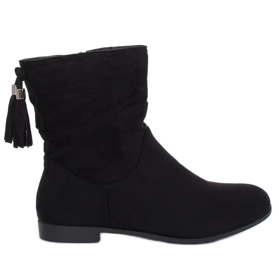 Descubra estilo e conforto únicos com botins femininos na cor preta 3737 Black. Estas botas rasas da moda são a escolha perfeita para qualquer ocasião. O seu design simples mas elegante é enriquecido com franjas subtis nas costas, que lhes conferem um carácter único.