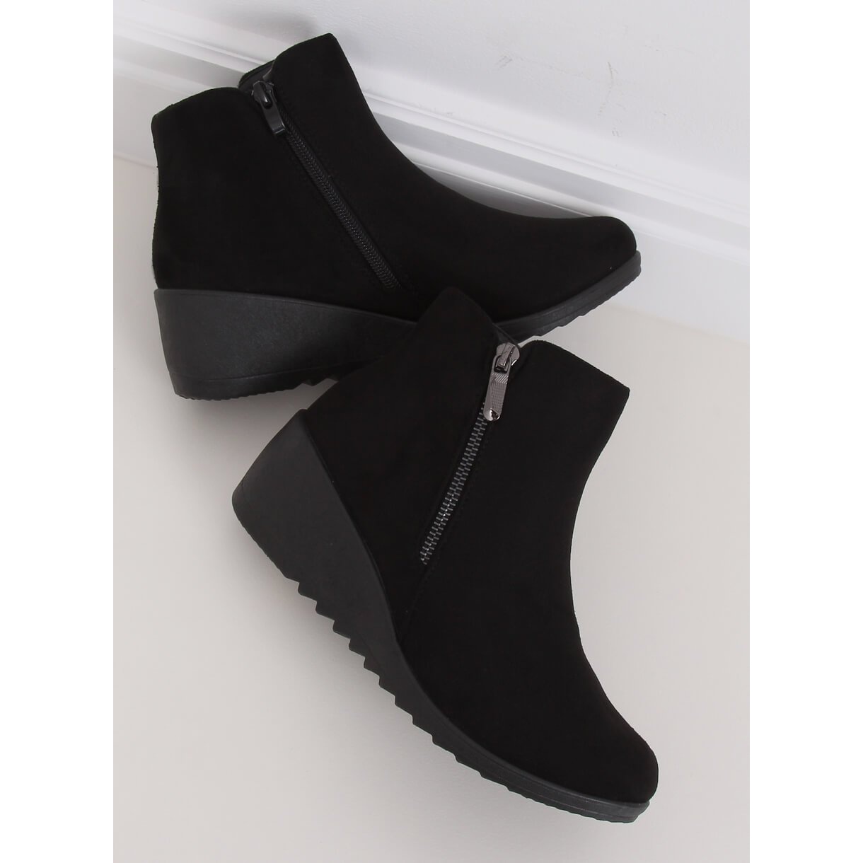 A altura da cunha de 5 cm proporcionará conforto adicional e facilidade de caminhar, ao mesmo tempo que dará um toque de estilo a qualquer estilo. A clássica cor preta faz com que as botas combinem com vários looks, dos casuais aos mais elegantes. O zíper decorativo lateral não só chama a atenção, mas também facilita a calçada.
