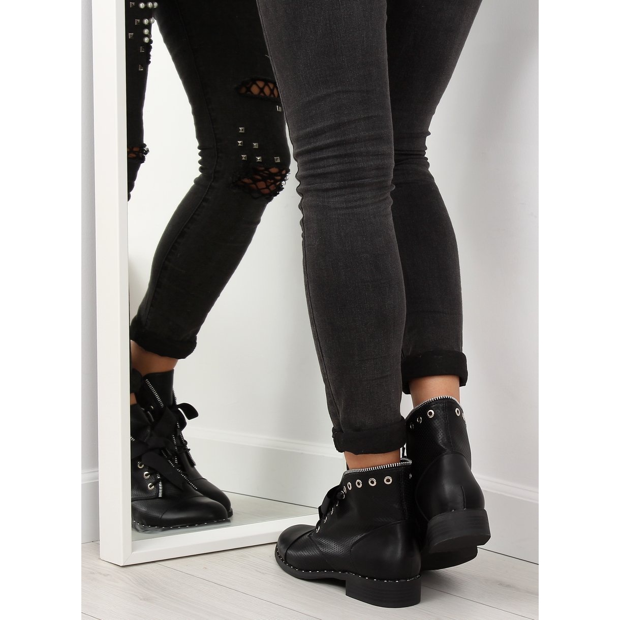 Descubra os originais botins pretos femininos 17018-9, que combinam perfeitamente o estilo rock com detalhes românticos. Estes sapatos com atacadores distinguem-se por um laço subtil e tachas decorativas que chamam a atenção e acrescentam carácter a qualquer estilo. O acabamento vazado torna as botas não apenas elegantes, mas também excepcionalmente impressionantes.