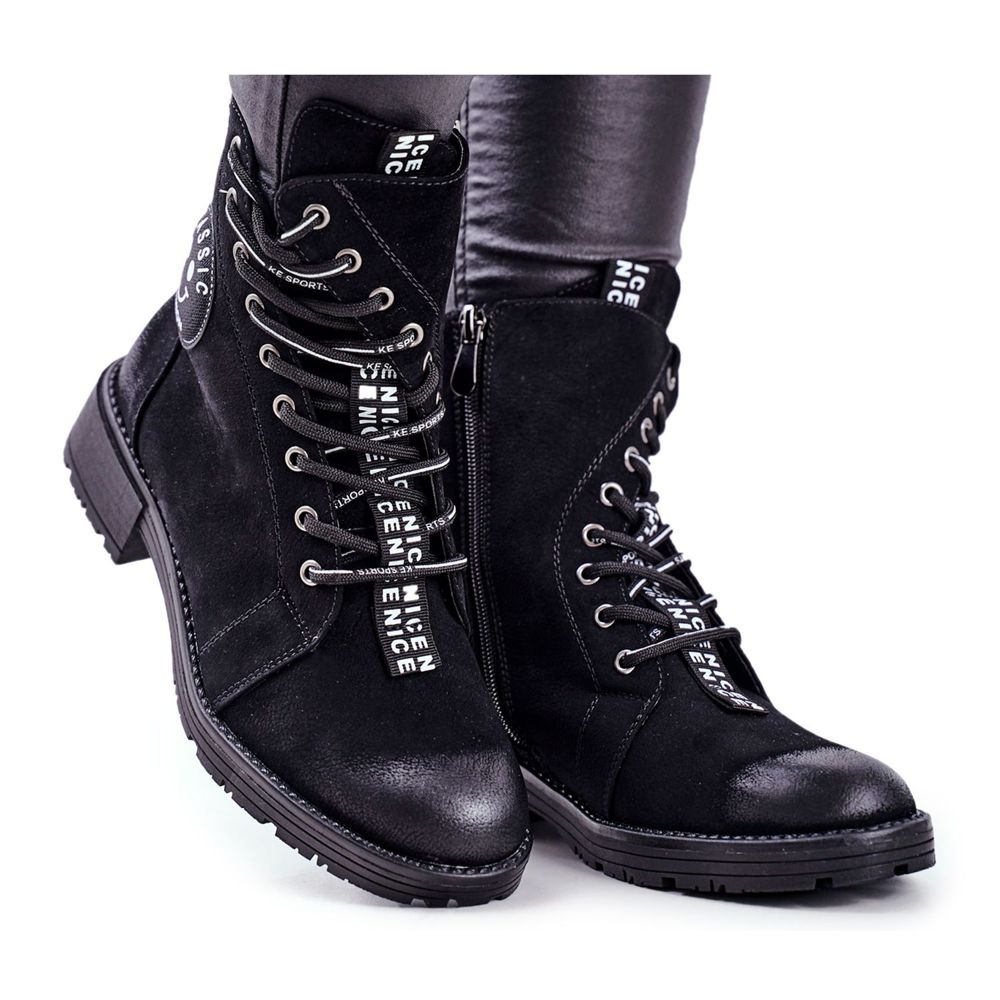 As botas têm bico redondo e foram desenhadas com atenção aos detalhes. Decorados com uma faixa preta com as inscrições “NICE” e laços inusitados, certamente vão chamar a atenção e destacar qualquer estilo. O salto plano de 4 cm de altura torna-o confortável de usar durante todo o dia, e a altura superior de 14 cm acrescenta personalidade e atratividade.