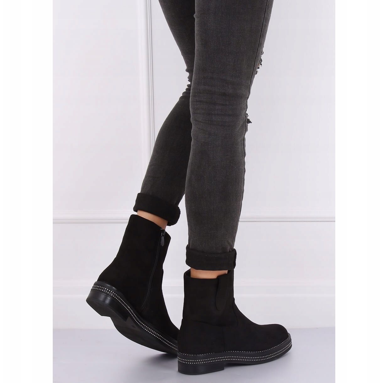 Apresentamos botas rasas femininas na clássica cor preta, modelo CH1812-2 Black. Estes botins exclusivos em camurça combinam elegância com toques modernos, deliciando-se com strass sutis colocados na sola alta. A altura do salto de 4,0 cm e a biqueira redonda tornam-nos extremamente confortáveis, perfeitos para o uso diário.