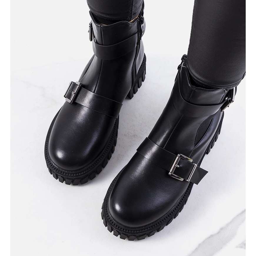 As botas da Samora são uma combinação de design da moda e soluções práticas - elas funcionarão como base de muitos estilos, de casual a mais rock ou cidade.