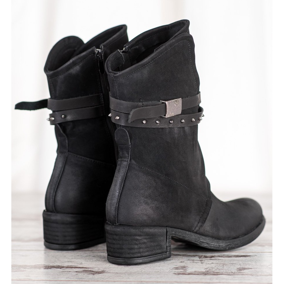 Feitos de couro ecológico de alta qualidade, eles não só têm uma aparência elegante, mas também cuidam do meio ambiente. O seu salto macio e fechado e o seu isolamento tornam-nos na escolha ideal para os dias mais frios de outono e inverno. O interior das botas é forrado com material têxtil, o que garante conforto durante todo o dia.