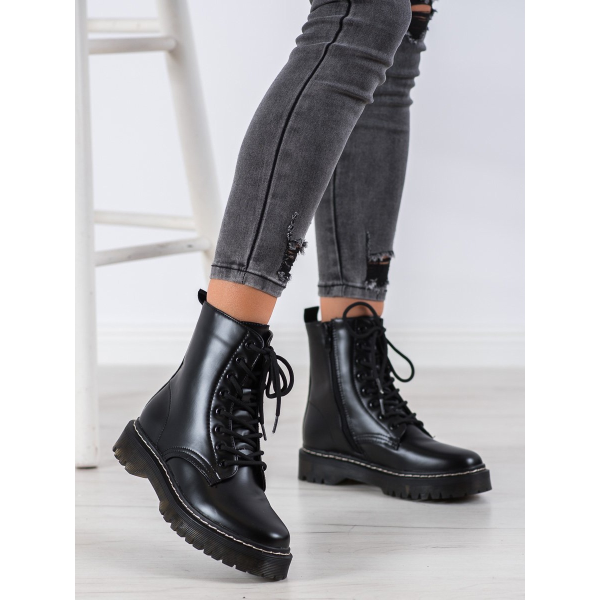 As botas pretas SHELOVET são a escolha perfeita para mulheres que valorizam não só o conforto, mas também o estilo moderno e original. Confeccionadas em couro ecológico de alta qualidade, essas botas combinam o caráter casual e rock, combinando perfeitamente com as últimas tendências para a temporada outono/inverno.