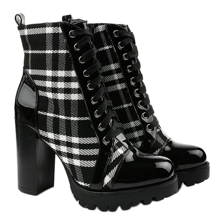 Apresentamos elegantes botins Millersto pretos, xadrez e com atacadores, que são o complemento perfeito para qualquer estilo. Caracterizadas por um design moderno, estas botas apresentam um cabedal confeccionado em tecido xadrez preto e branco, o que lhes confere um visual único e fashion. As inserções lacadas acrescentam classe e os tornam perfeitos tanto para o uso diário quanto para ocasiões mais formais.