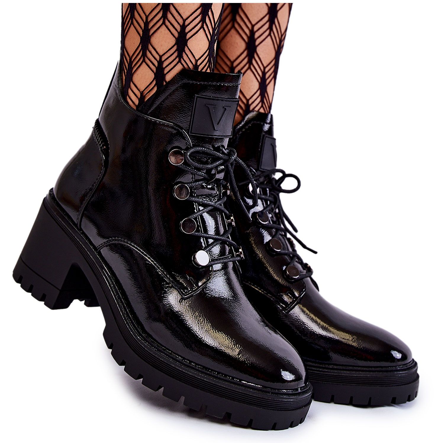 Vinceza Vinceza Botas quentes com cadarço lacadas pretas Ragnhild preto