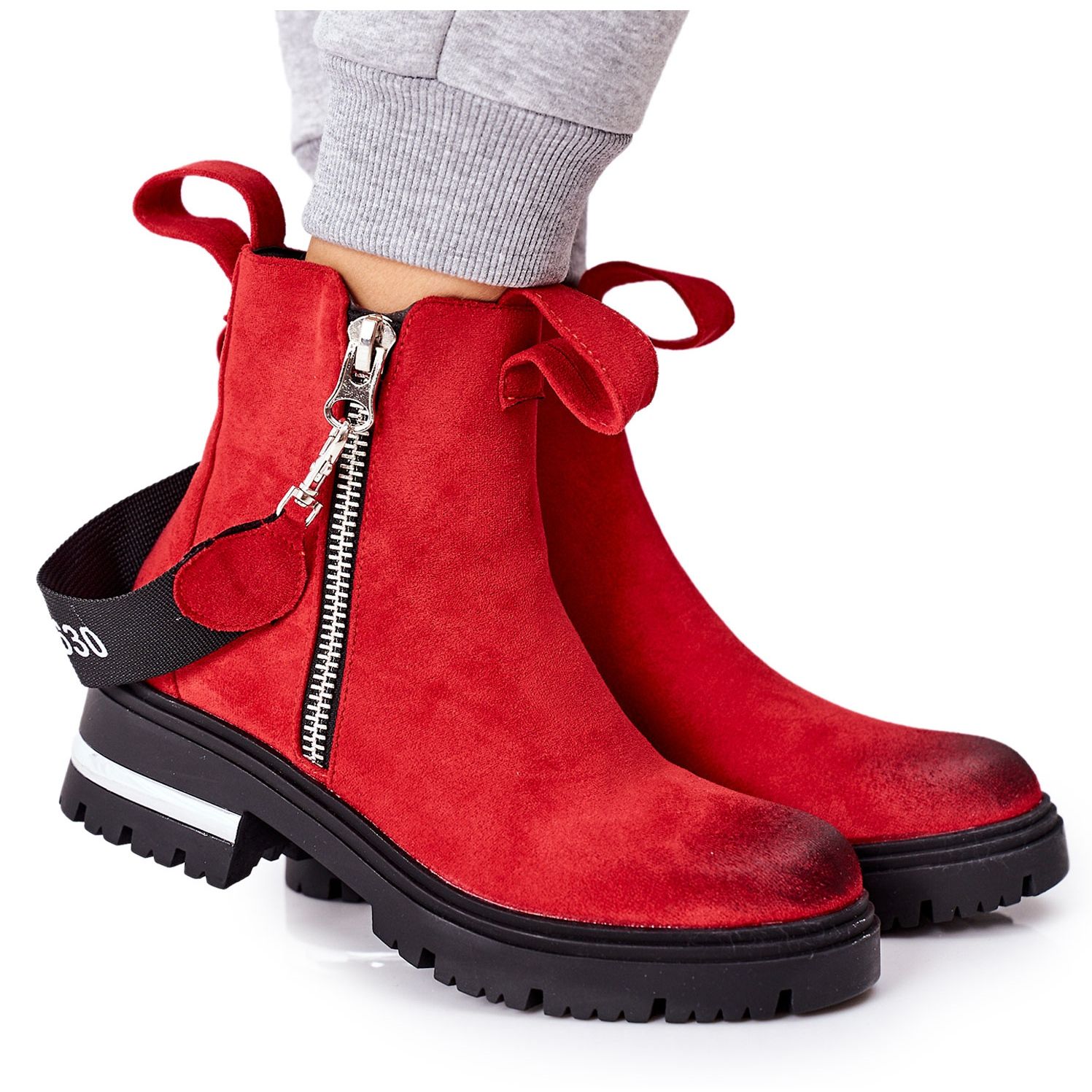 Detalhes: PS1 Botas Quentes Cortona Vermelha Com Zíper vermelho