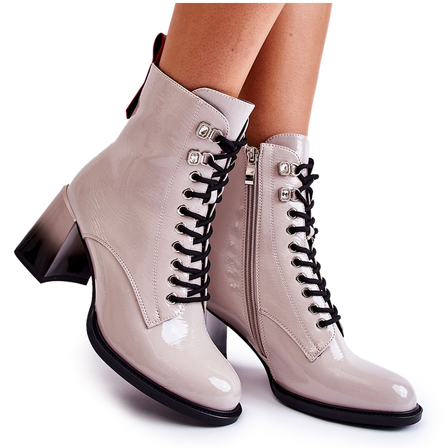Fechados com zíper lateral e amarrados, garantem um ajuste perfeito à largura da perna, o que permite um uso confortável o dia todo. Confeccionados em couro ecológico de alta qualidade, caracterizam-se pelo salto reforçado e biqueira arredondada, que conferem charme feminino.