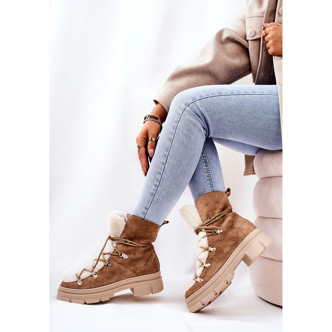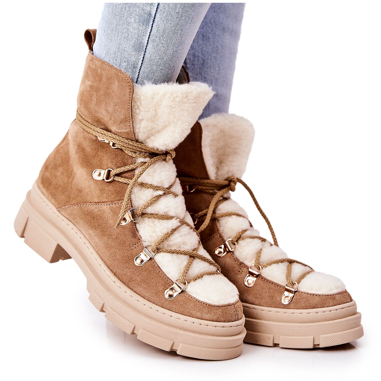 Detalhes: PF1 Botas Quentes de Camurça Bege Trappers Mindago