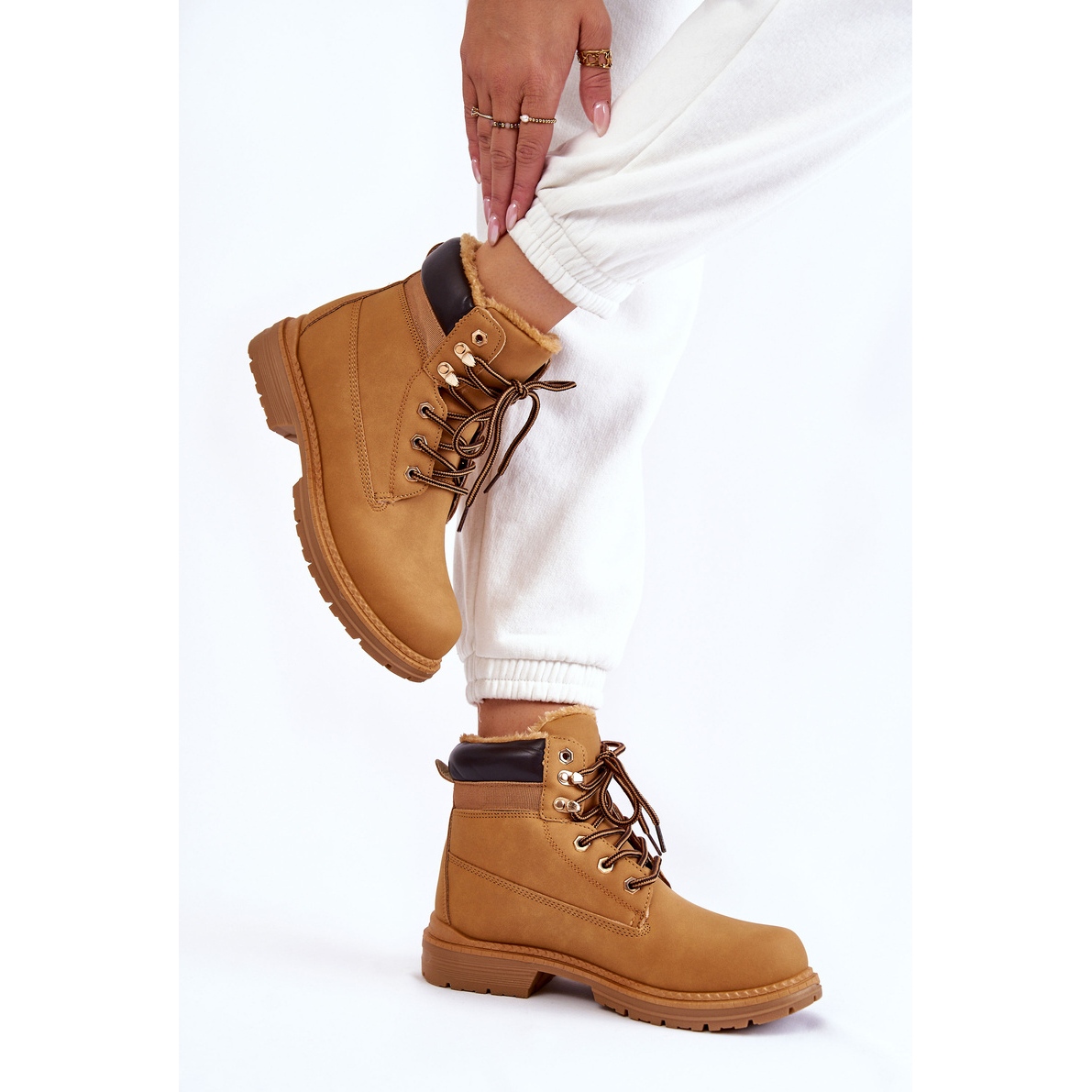 Detalhes: Botas quentes femininas Camel Lonne marrom