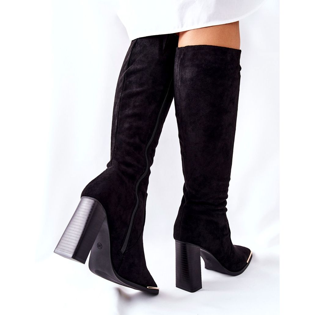 Descubra elegância e conforto no último modelo de botas femininas PS1. Estas lindas botas pretas de corte clássico vão decorar perfeitamente qualquer estilo, acrescentando um toque de luxo graças à biqueira dourada. O modelo montado sobre um poste estável e delicado proporciona não só um visual extraordinário, mas também conforto de uso, emagrecendo o corpo.