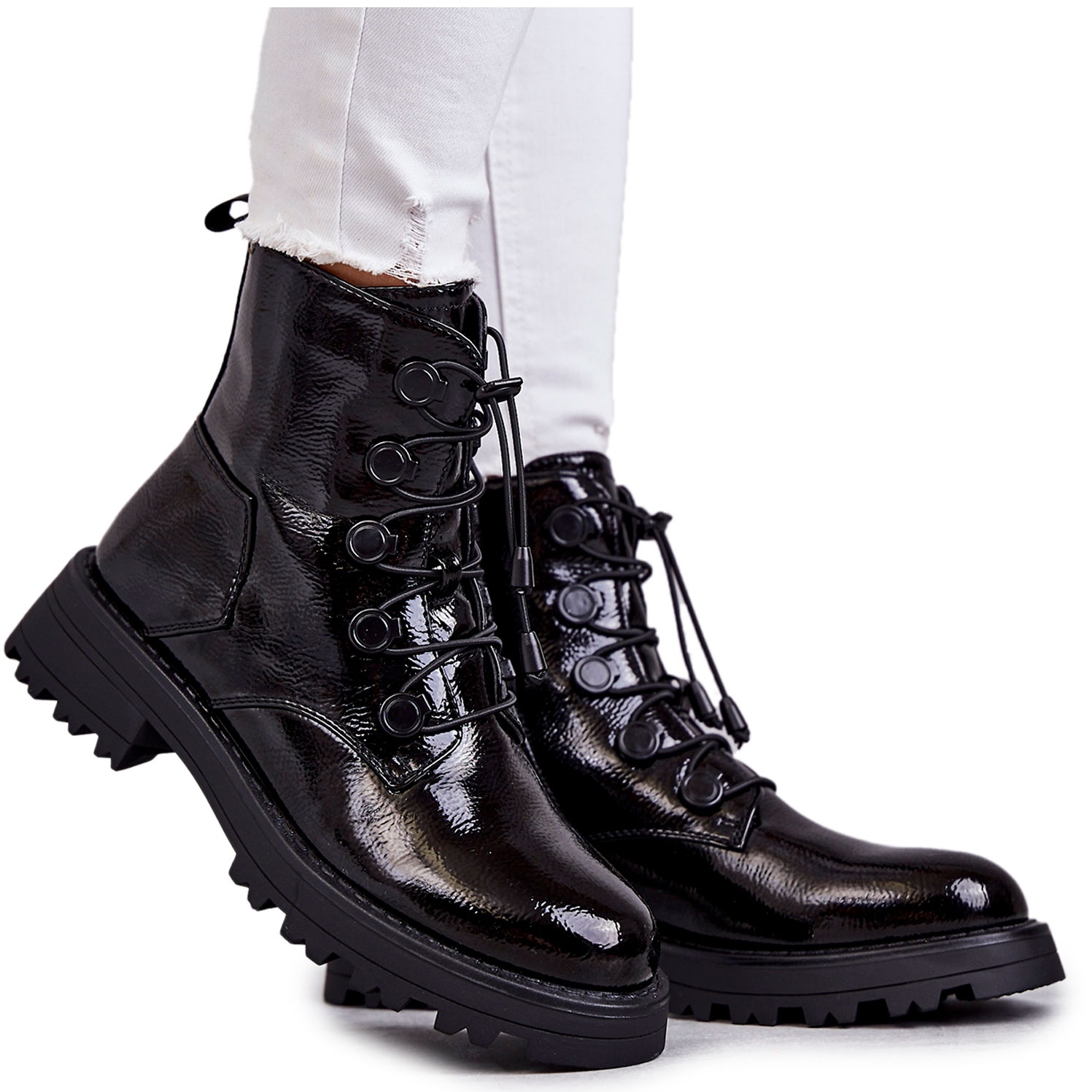 Detalhes: PJ1 Botas quentes femininas lacadas com nervuras pretas Helia preto