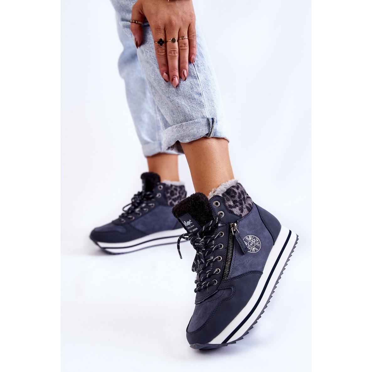 Detalhes: Botas quentes femininas Lee Cooper LCJ-22-31-1450 azul marinho