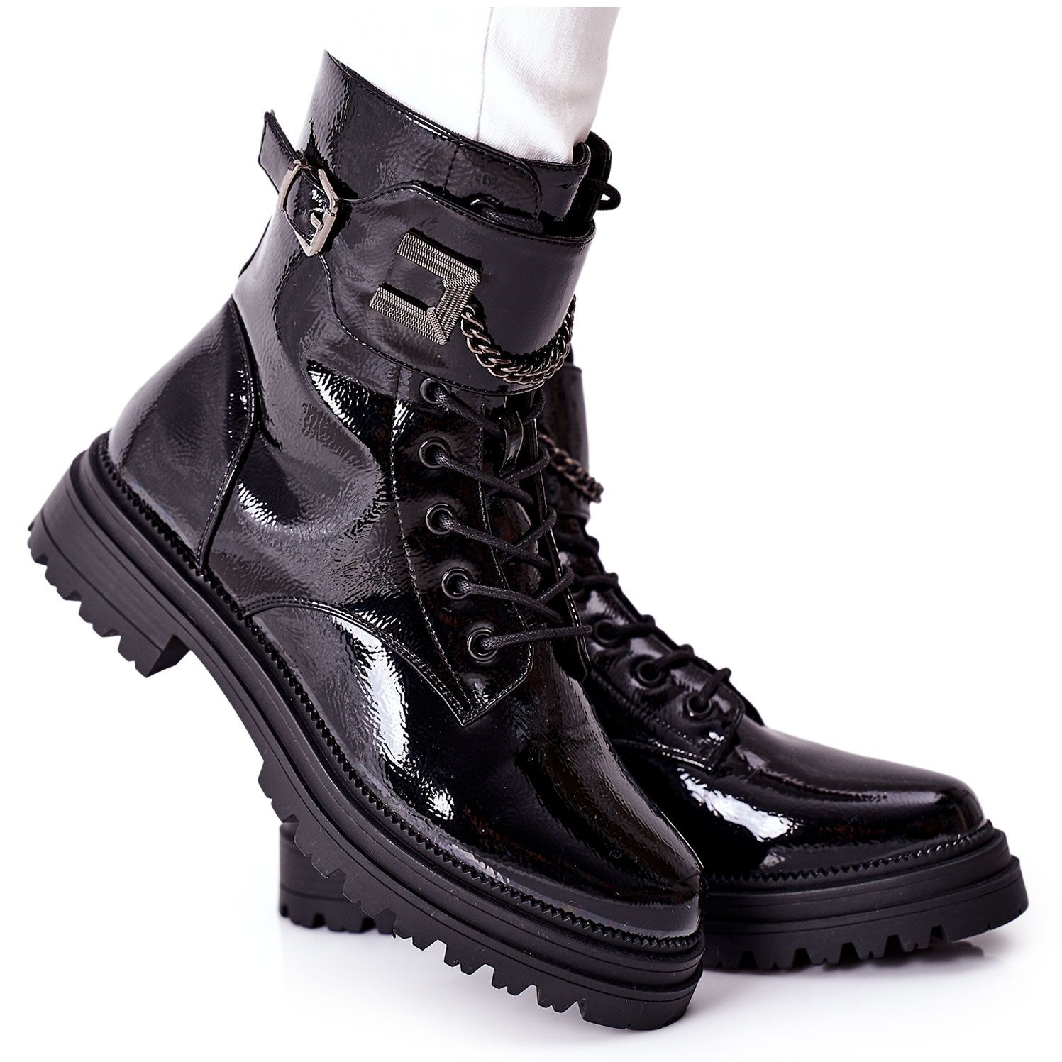 Confeccionados em couro ecológico envernizado, esses botins chamam a atenção pelo acabamento brilhante, que vai dar brilho a qualquer estilo. A utilização de um zíper costurado na lateral facilita muito a colocação, enquanto o laço clássico permite um ajuste preciso ao pé. O interior isolado com pêlo macio faz com que as pernas permaneçam quentes e confortáveis mesmo nos dias mais frios.