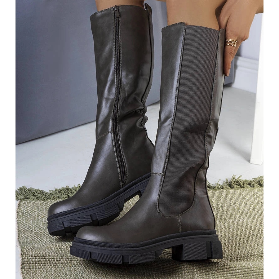Botas da moda em uma sola de trator - perfeitas para a temporada de outono/inverno. A parte superior feita de couro ecológico de alta qualidade em um tom de verde escuro, isolado interior com material quente, uma sola de borracha cinza confortável e um prendedor de zíper prático. O modelo ML141 combina um corte clássico com um sotaque predatório das solas do trator - ótimo para estilizações cotidianas e urbanas.