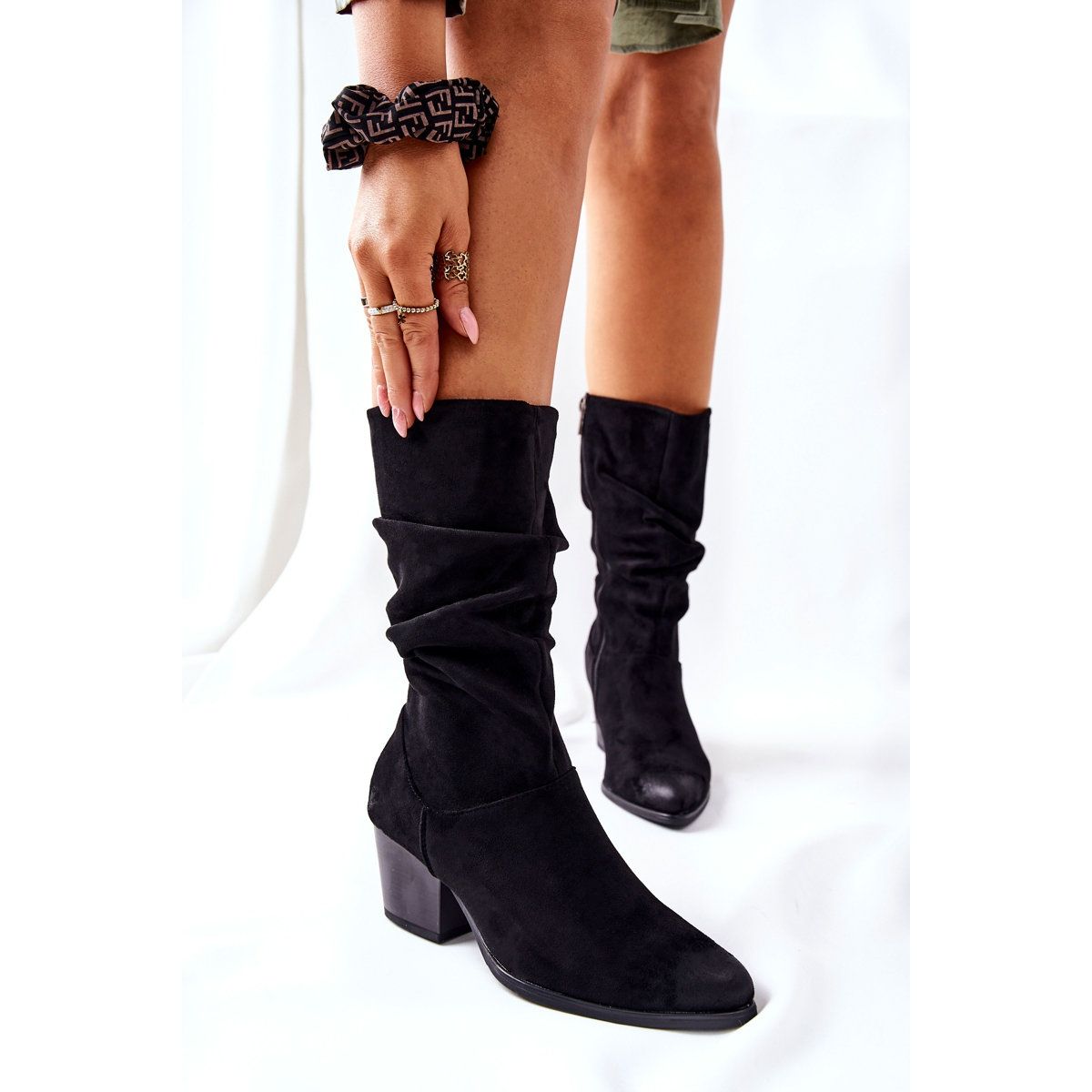 São botas Vinceza que aliam elegância e conforto. Confeccionadas em couro camurça ecológico, essas botas pretas são a escolha perfeita para o outono/inverno. O corte clássico, a biqueira pontiaguda e o zíper lateral os tornam não só elegantes, mas também extremamente funcionais.