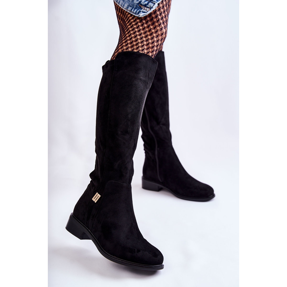 Desfrute de um look fashion e confortável com as botas Giulia de camurça preta da S.Barski - a escolha perfeita para toda mulher que quer brilhar em todas as situações!