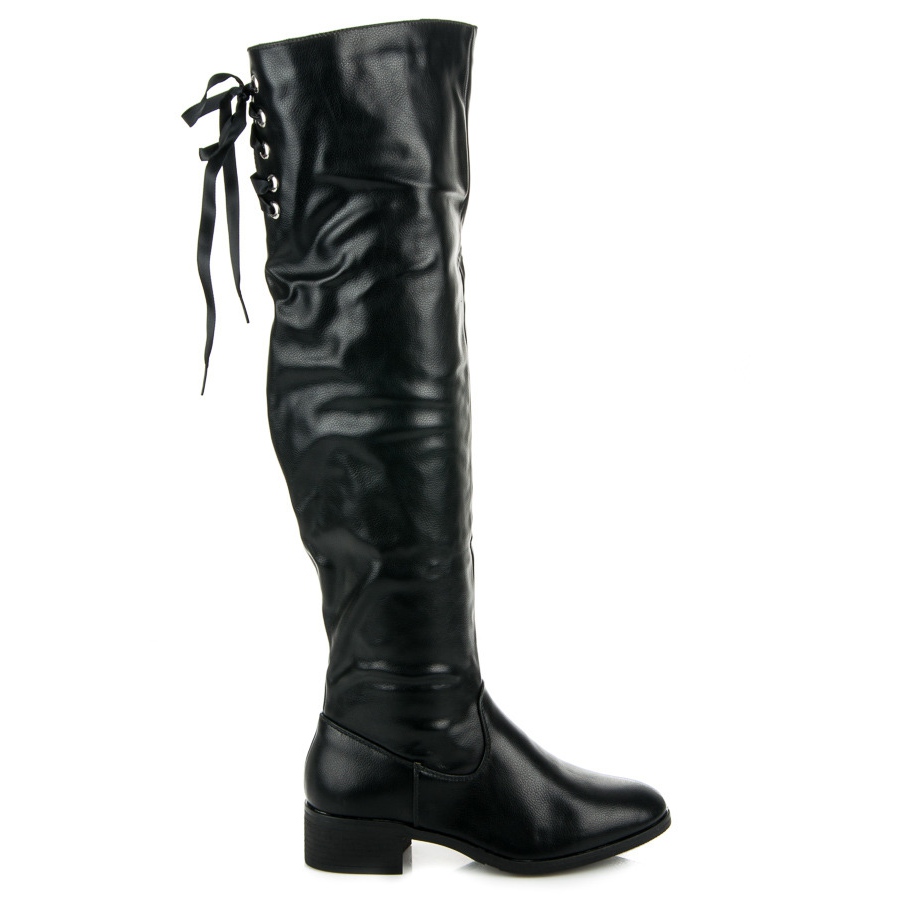 Detalhes: Botas rasas de cano alto com amarração preto