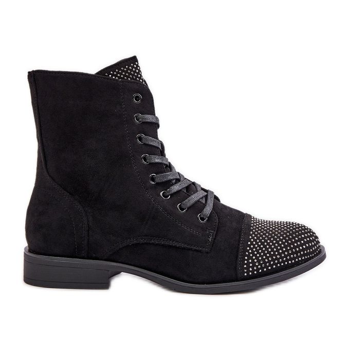 Detalhes: Botas rasas decoradas, camurça ecológica, isoladas, pretas Ellieo preto