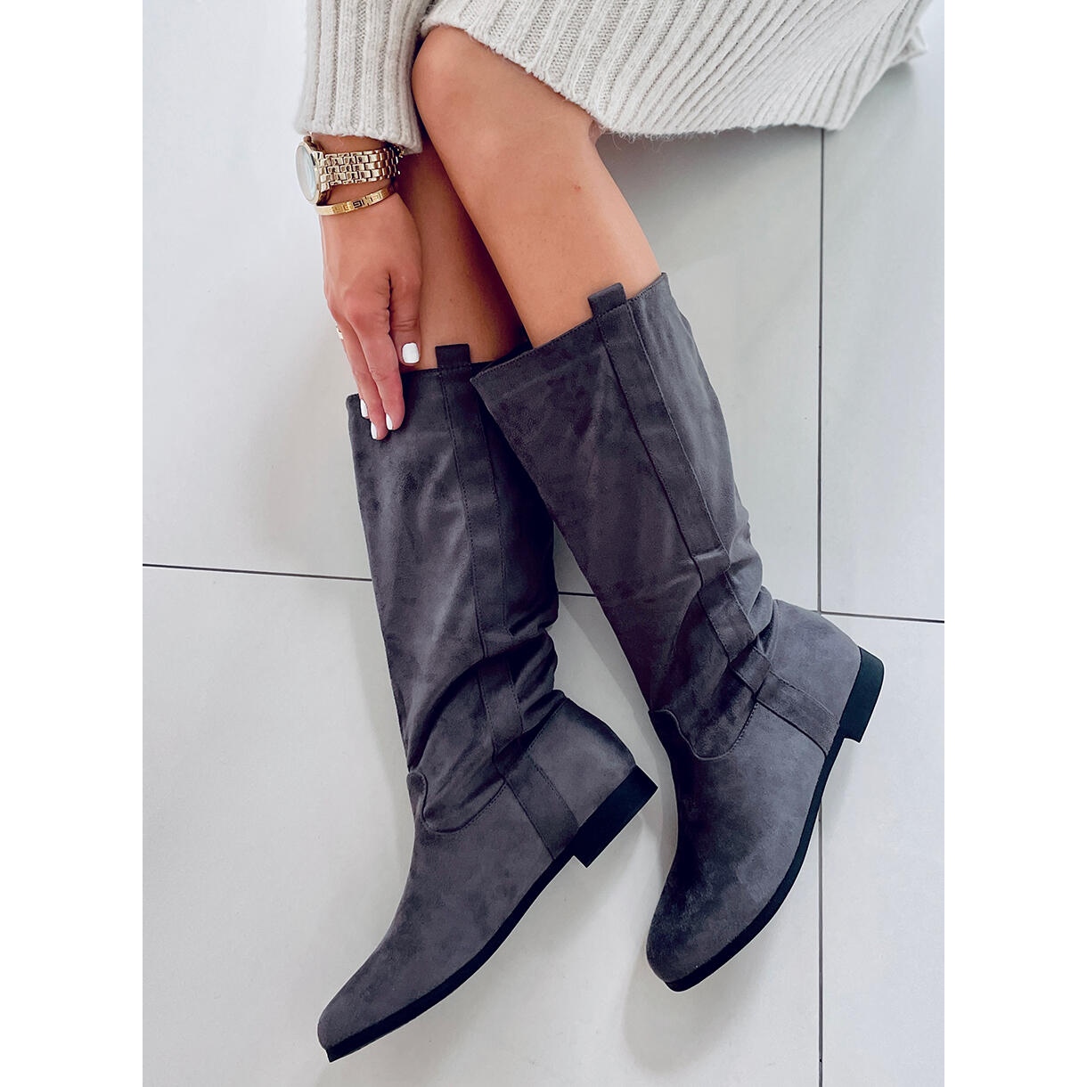 Descubra conforto e estilo com a bota Flatty Grey da PA1! Estas elegantes botas rasas confeccionadas em camurça ecológica no clássico tom cinza serão um complemento perfeito para qualquer estilo do dia a dia. A parte superior reta e a biqueira redonda tornam-nos rápidos e confortáveis de calçar, sendo a escolha ideal para os dias mais frios.