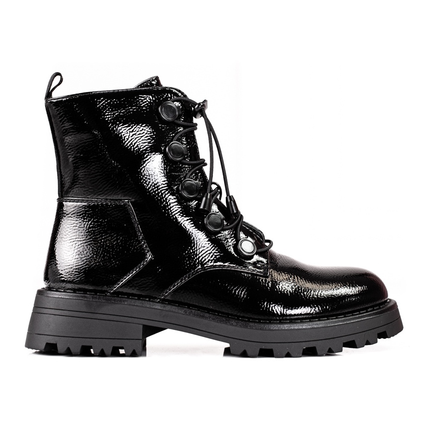 São botins femininos de couro envernizado na elegante cor preta da marca Shelovet, que são a escolha perfeita para o outono / inverno. Estes sapatos estilosos combinam um caráter casual e um design moderno, combinando perfeitamente com as últimas tendências. Feitos de couro envernizado de alta qualidade, eles têm um visual muito impressionante e sua superfície brilhante certamente atrairá a atenção.