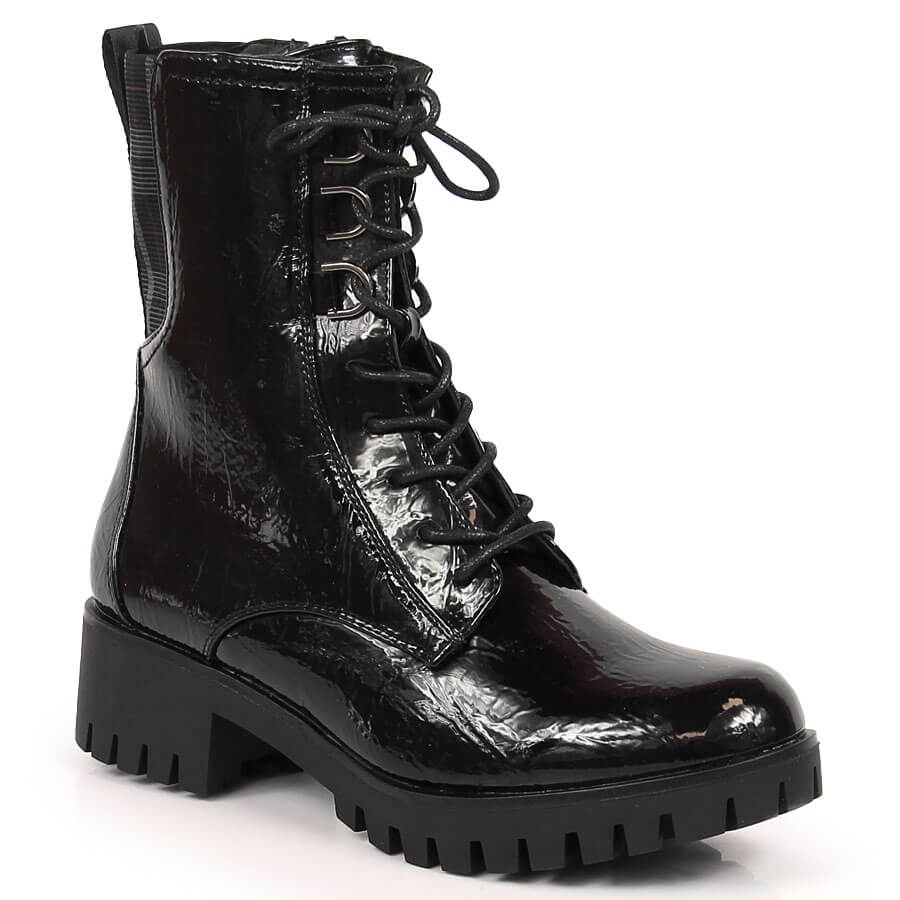 Detalhes: Botas trappers lacadas e isoladas em preto Jezzi JEZ369