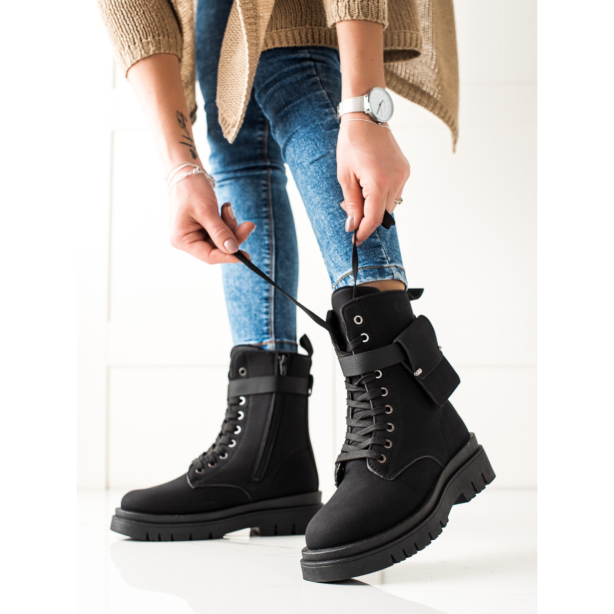 TRENDI TRENDI Botas trappet com atacadores e bolso preto