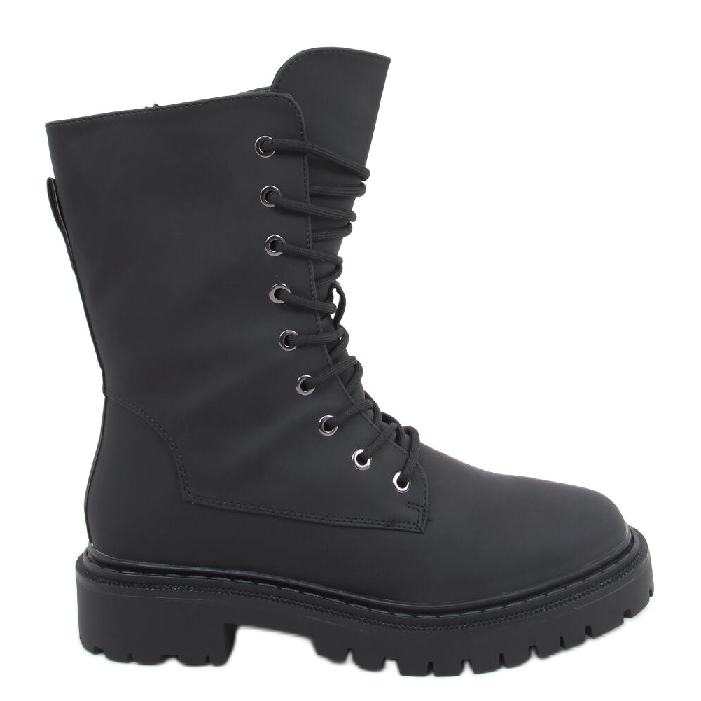 O laço clássico permite um ajuste individual à largura do pé, enquanto o zíper na lateral da parte superior facilita a colocação e a retirada. Estas botas pretas com salto plano de 3,5 cm de altura são perfeitas para o estilo do dia a dia, conferindo-lhes um toque militar. Graças ao isolamento em forma de pêlo delicado, serão a escolha perfeita para os dias mais frios.