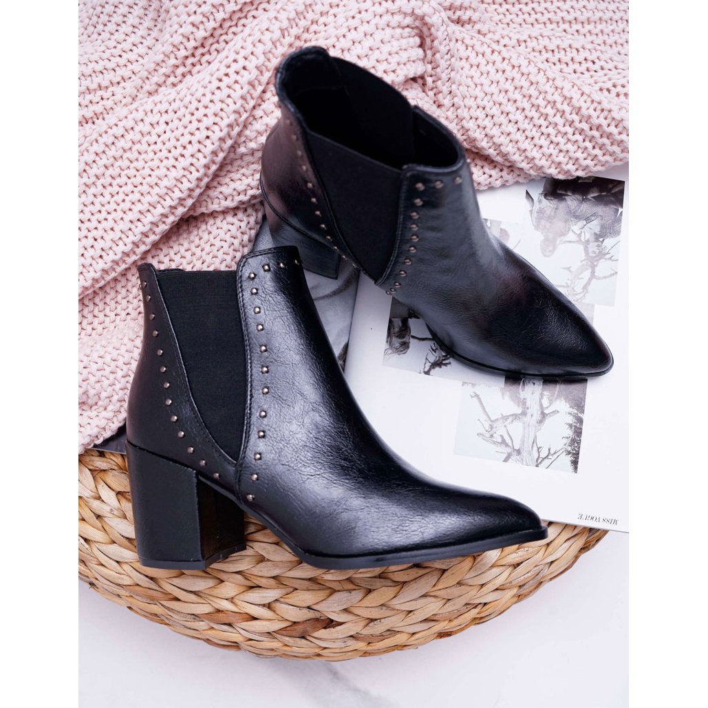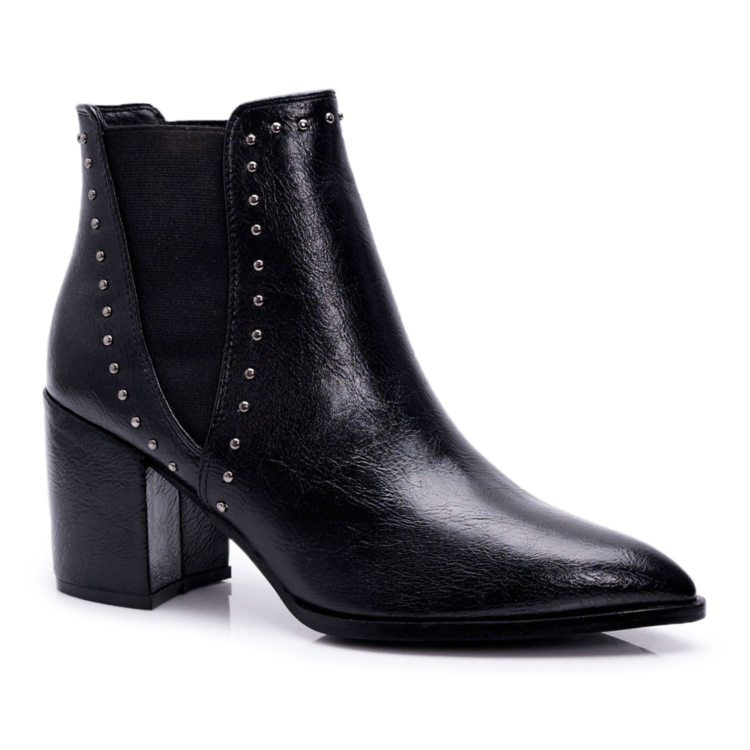 Os botins femininos da moda FRGIV Trini na cor preta são a escolha perfeita para mulheres que valorizam estilo e conforto. Com bico pontudo e salto elegante e delicado de 8 cm, esses sapatos enfatizam perfeitamente a figura, agregando leveza e feminilidade. A parte superior de 11 cm de altura é rematada com rebites decorativos prateados, o que lhes confere um carácter original.
