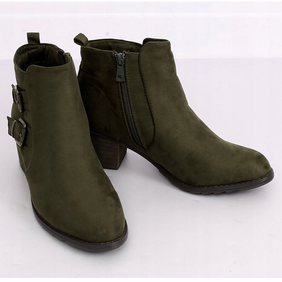 Apresentamos elegantes botins de salto alto K1809305 num lindo tom de cáqui, que são a escolha perfeita para qualquer mulher fashion. Estes botins femininos decotados distinguem-se por um salto largo e estável de 5,5 cm, o que os torna não só elegantes, mas também confortáveis, perfeitos para o uso diário.