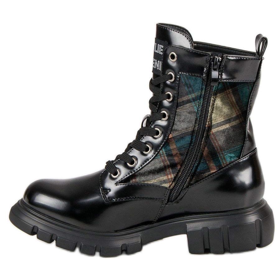 Descubra os extraordinários botins pretos da Kylie, que combinam perfeitamente com o estilo rock e a elegância do dia a dia. Estas botas Bovver da moda foram criadas para mulheres que valorizam não só o conforto, mas também um design único. Feitos de couro ecológico envernizado, eles não só têm uma aparência impressionante, mas também são ecologicamente corretos.