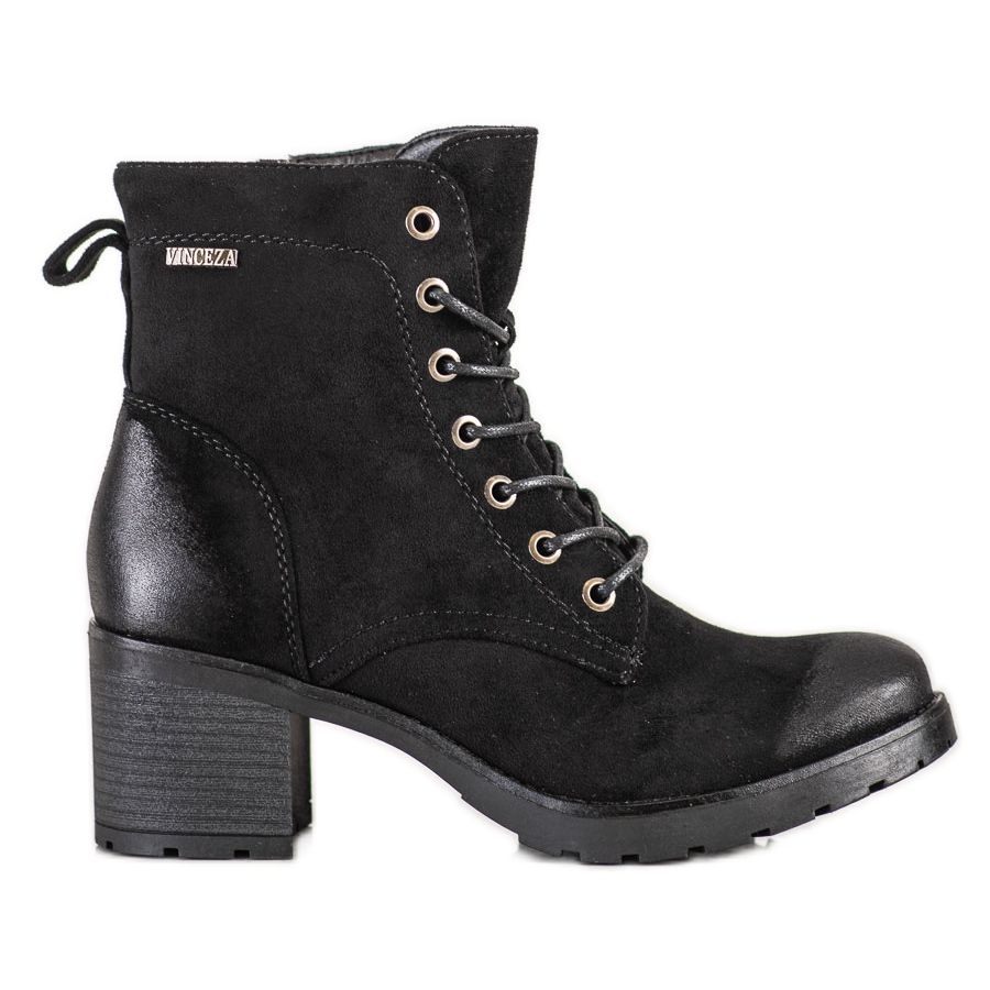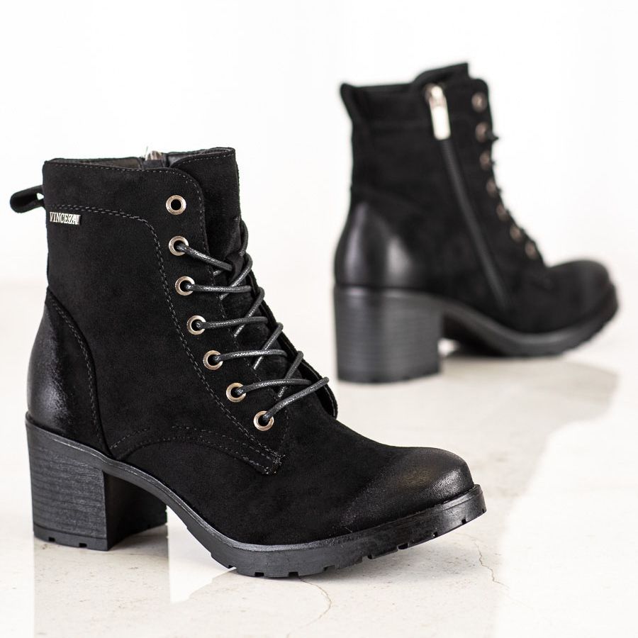 Os botins casuais VINCEZA na cor preta são a escolha perfeita para mulheres que desejam combinar conforto com estilo moderno. Estes sapatos elegantes distinguem-se por um salto reforçado e reforçado, que garante excelente suporte para os pés e estabilidade durante as atividades diárias.