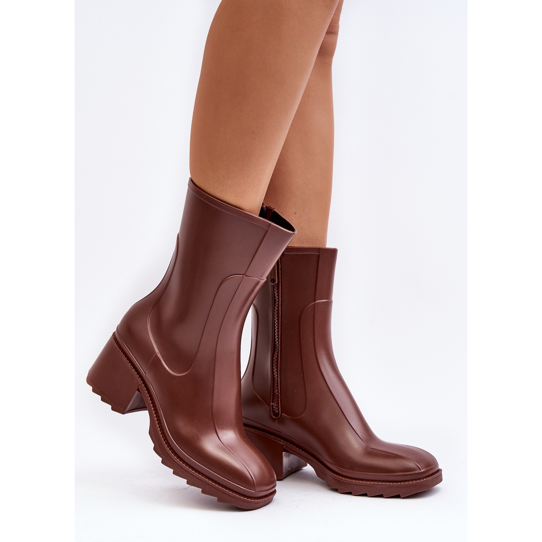 Detalhes: Botas Wellington Foscas Femininas com Salto Alto, Marrom Bertaida