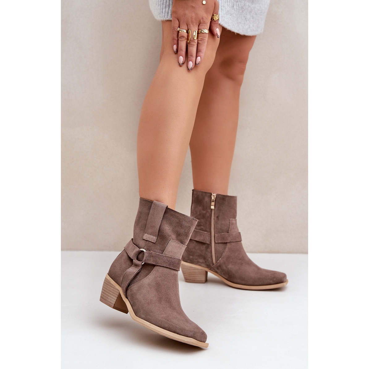 Detalhes: Botas Zazoo 3444/2 marrons de salto alto feitas de camurça natural marrom