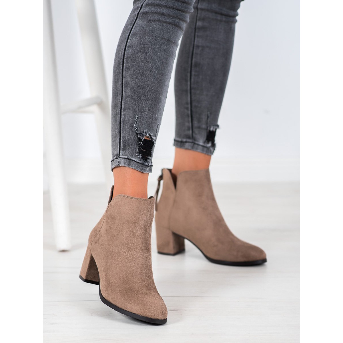 Confeccionados em couro camurça ecológico de alta qualidade, esses botins aliam estética e conforto. A parte superior alta, de 10 a 11 cm de altura, alonga opticamente as pernas, e a ponta redonda adiciona sutileza. Além disso, as franjas que decoram estes sapatos acrescentam um elemento de modernidade e originalidade.
