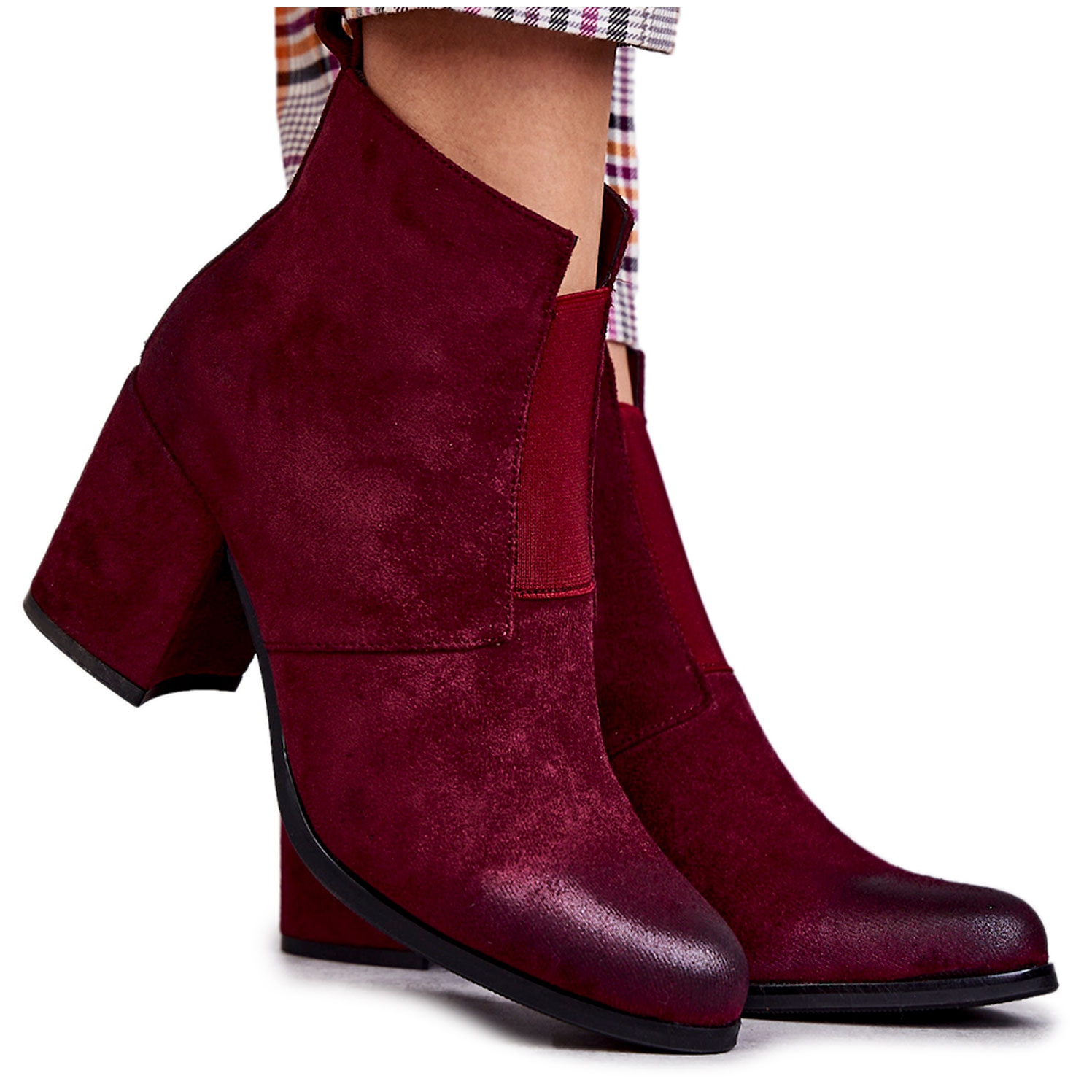 Boots clássicos de camurça la.fi PL4 260035WI-SU-ELEGANCE E CONFORTO EM UM. Feito de eco-eco suave em um tom elegante de Borgonha (Borgonha), incorporado em um salto estável, como um poste (7,5 cm), que sutilmente diminui a figura. O dedo do pé de amêndoa e a inserção flexível na frente proporcionam conforto a cada passo, e a trava lateral facilita a instalação.