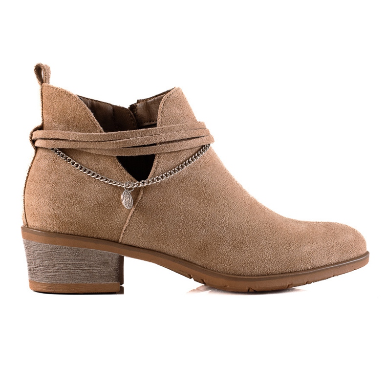 Descubra estilo e conforto únicos com botas marrons da marca Filippo. Estes botins femininos da coleção KeeShoes combinam o casual elegante com um toque de luxo graças a uma corrente decorativa e uma tira com acabamento em strass. Confeccionados em couro camurça ecológico de alta qualidade, proporcionam não só um visual atraente, mas também durabilidade no uso.