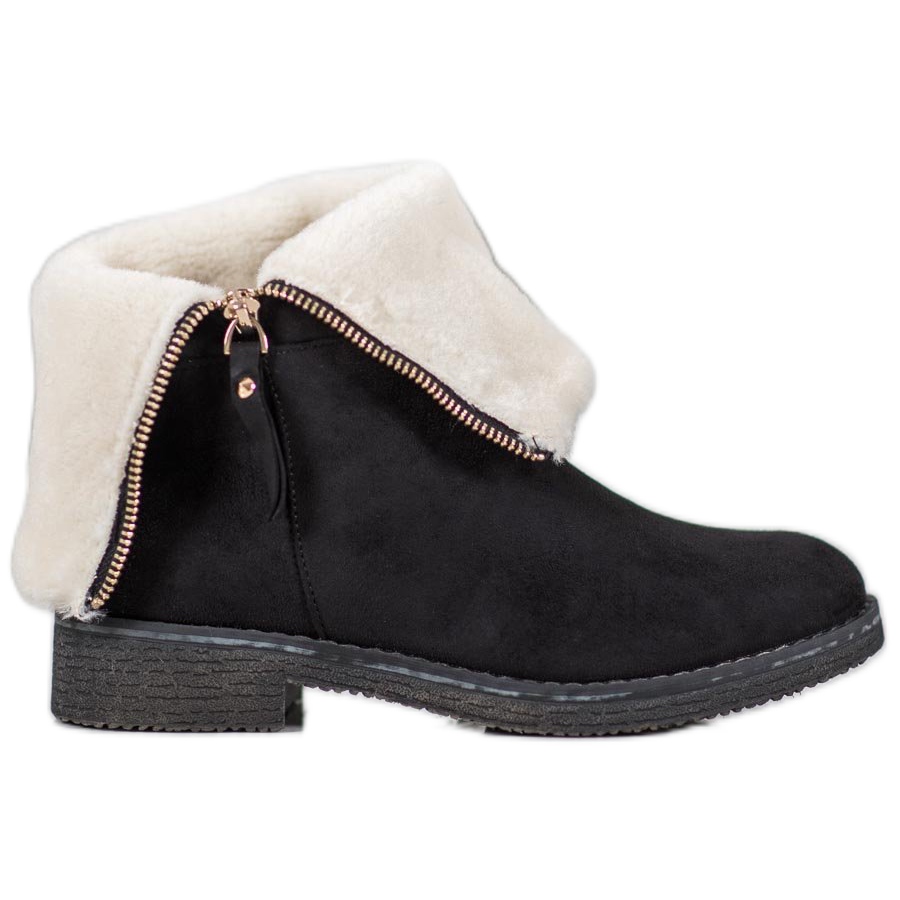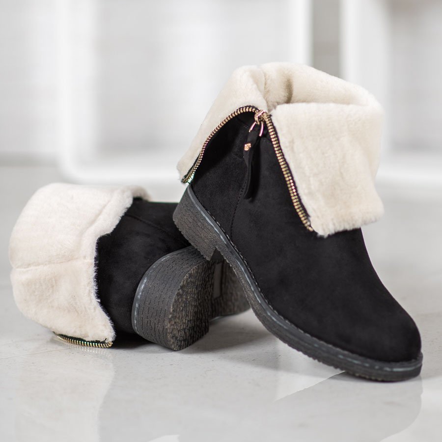 As botas têm salto plano e estável com 3 cm de altura, o que as torna uma solução perfeita para o uso diário - são perfeitas para caminhadas e tarefas do dia a dia. Equipados com zíper e salto reforçado embutido, garantem facilidade de calçamento e sólido apoio para os pés.